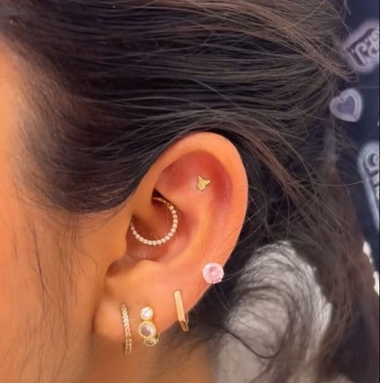 Labret Flor de Loto 3 petalos zirconias tornasol - Titanio