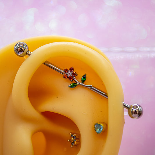 Piercing Industrial hojitas azules - Titanio