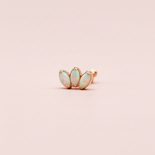 Piercing Flor de Loto 3 Pétalos Ópalo tornasol - Titanio (Labret )