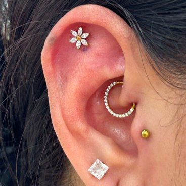 Piercing oreja arco 9 olivos blancos - Labret Titanio