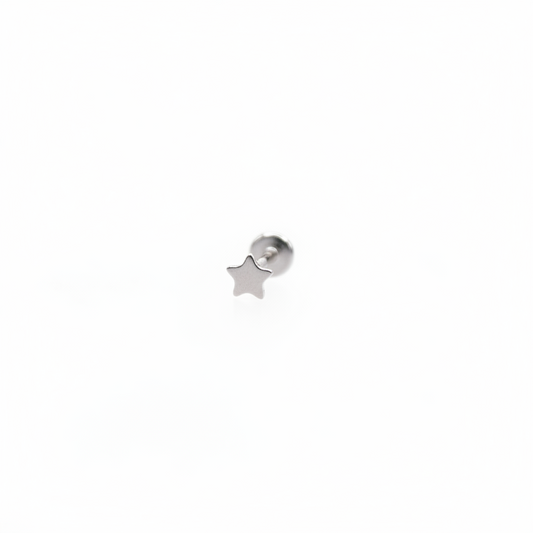 Piercing estrella plana plateada - Acero quirúrgico (Labret)
