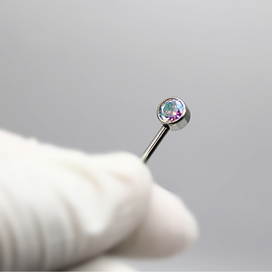 Piercing Pezón 2 pastillas de zirconias tornasol - Titanio