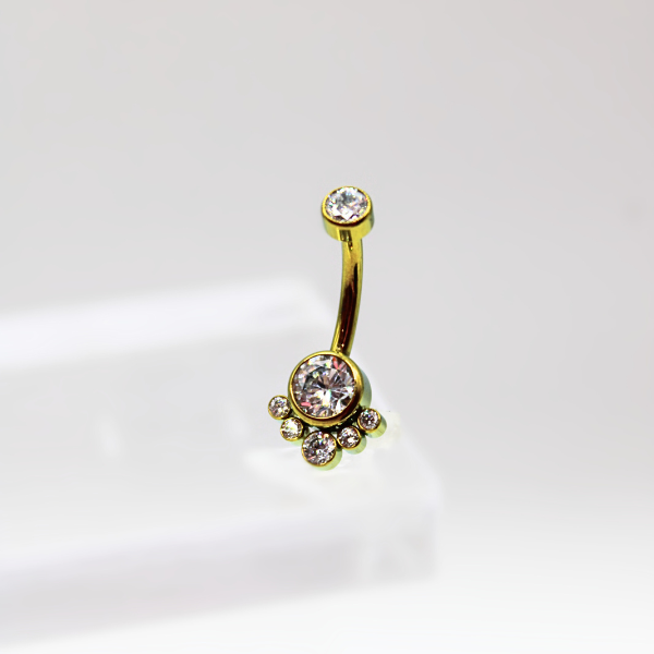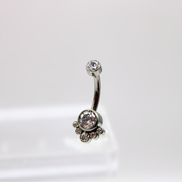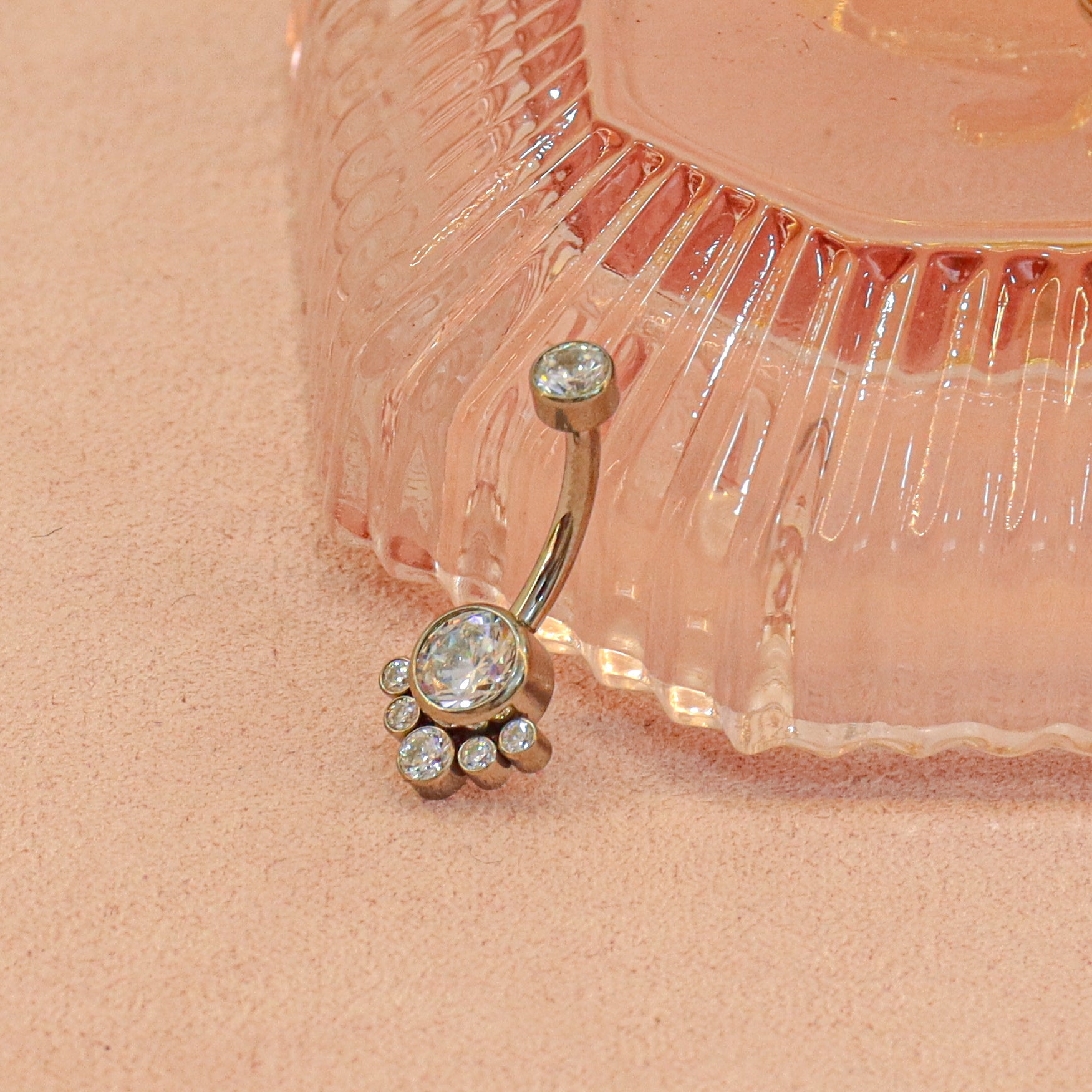 Barbell Curvo Titanio para Ombligo diseño Zirconia blanca con 5 mini pastillas