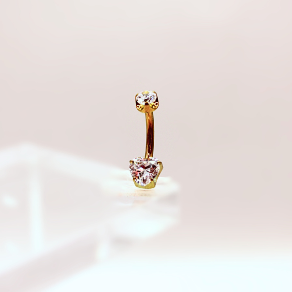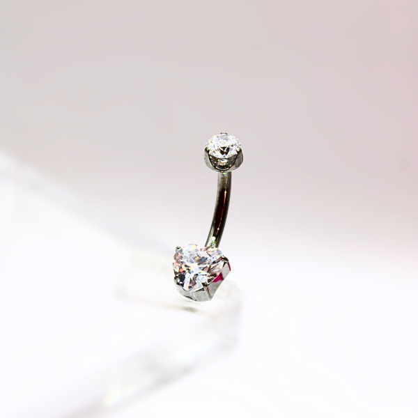 Barbell Curvo Titanio para Ombligo diseño zirconia de corazón