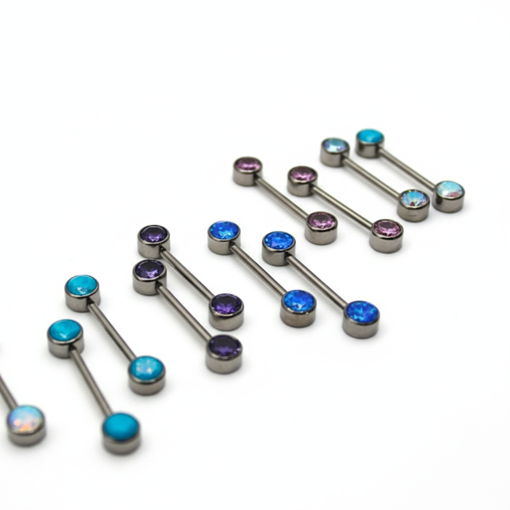 Piercing para Pezón 2 pastillas de zirconias azules - Titanio