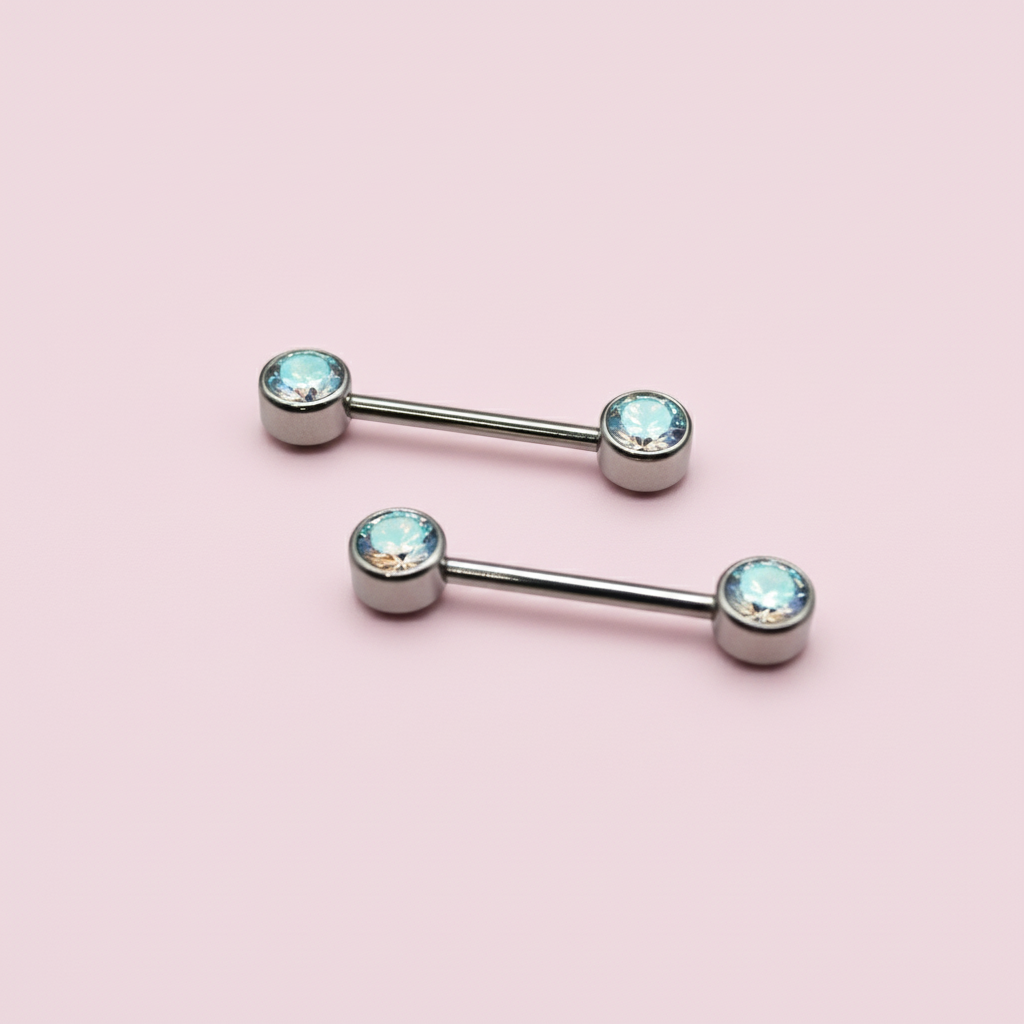 Piercing Pezón 2 pastillas de zirconias tornasol - Titanio
