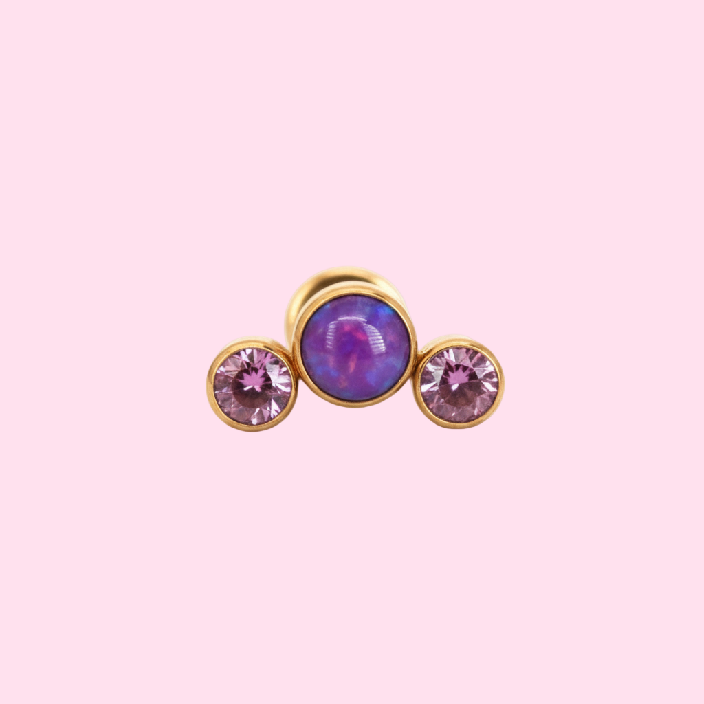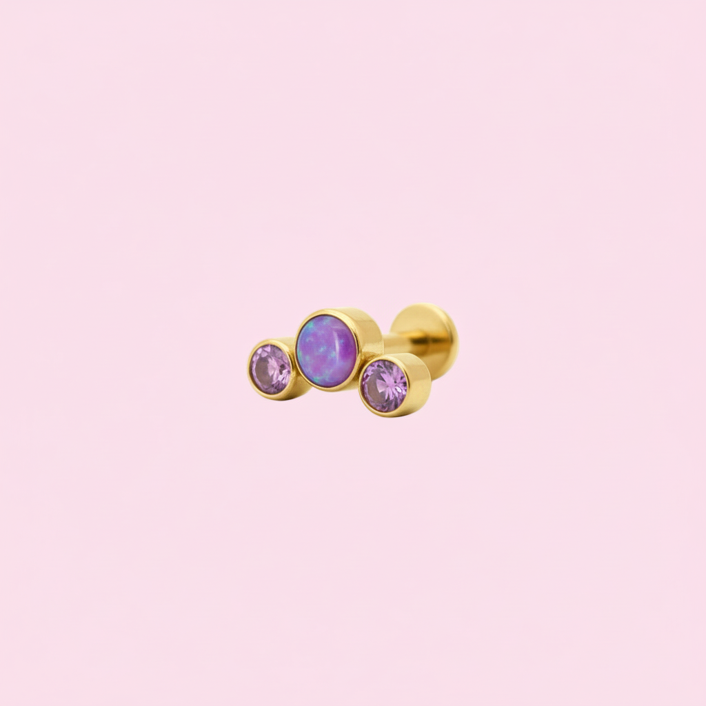 Piercing 3 Pastillas Moradas zirconia y ópalo - Titanio (Labre)