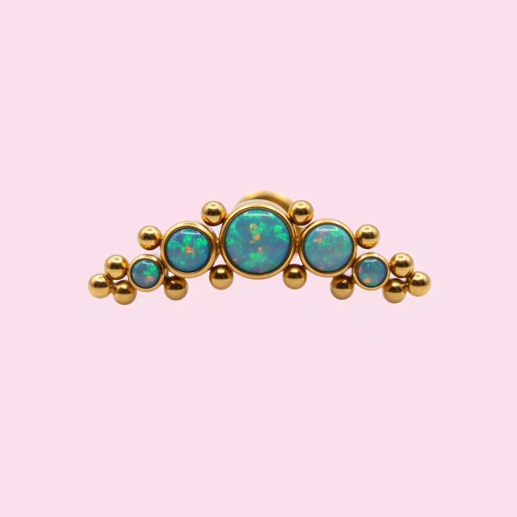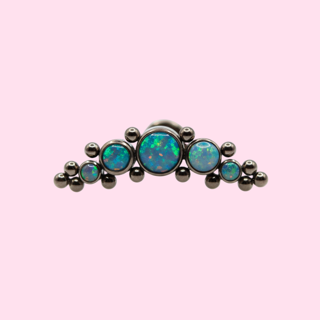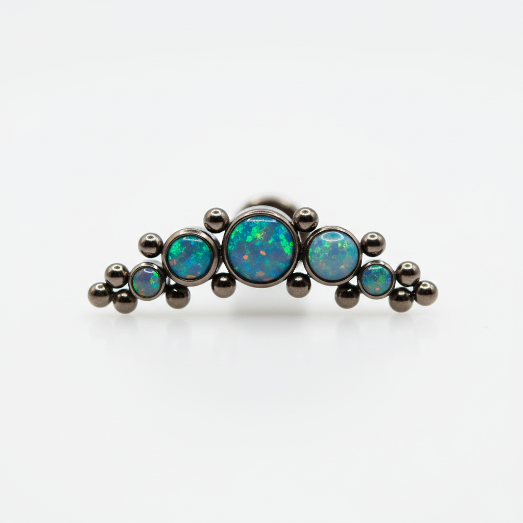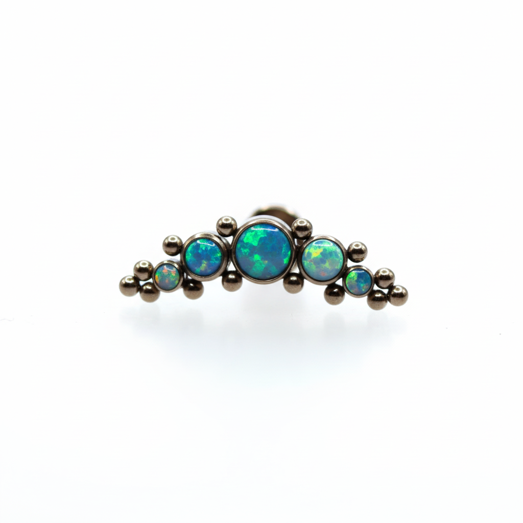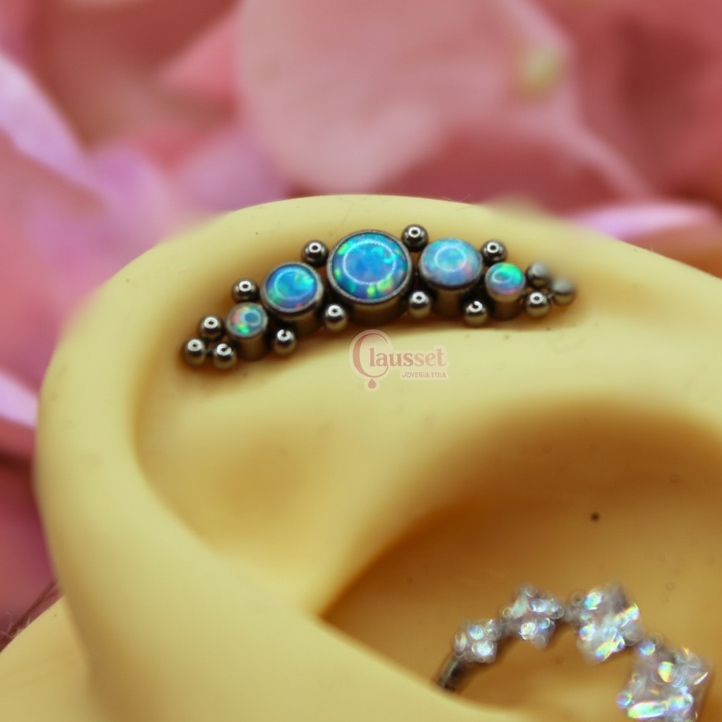 Piercing 5 pastillas y 14 microesferas Opalo tornasol - Titanio