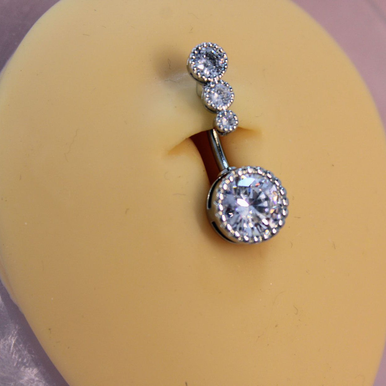 Piercing Ombligo 4 Zirconias Plata- Acero Quirúrgico