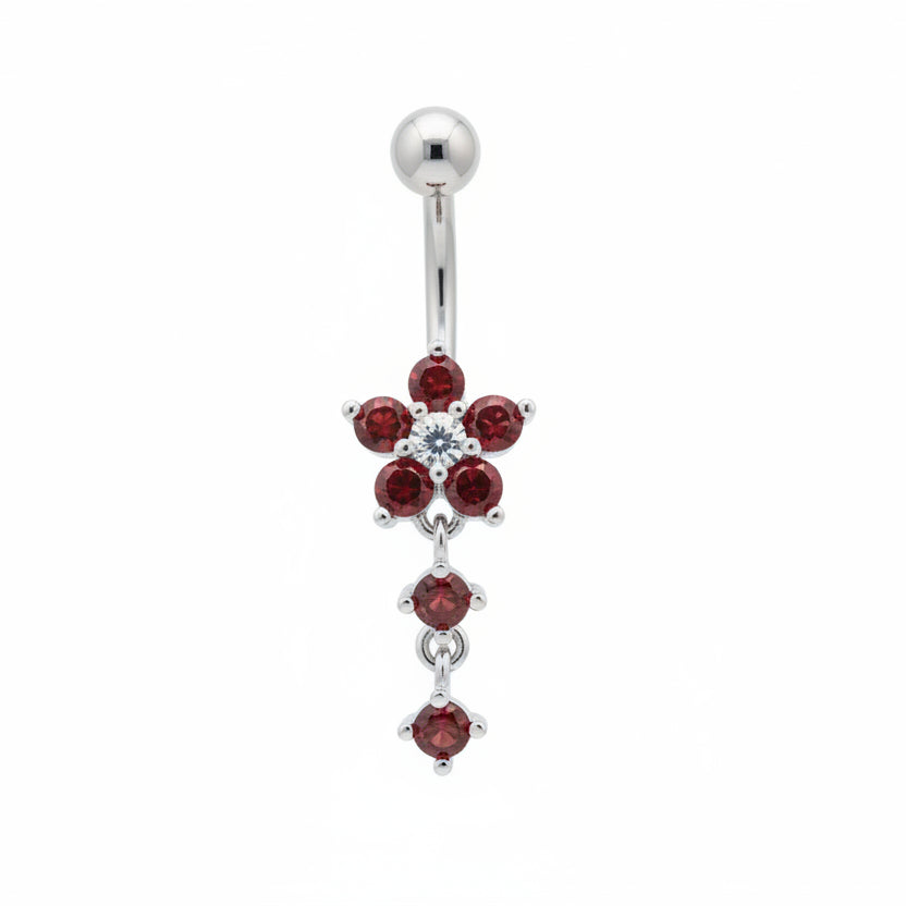 Piercing Ombligo Flor y Zirconias Cafe - Acero Quirúrgico